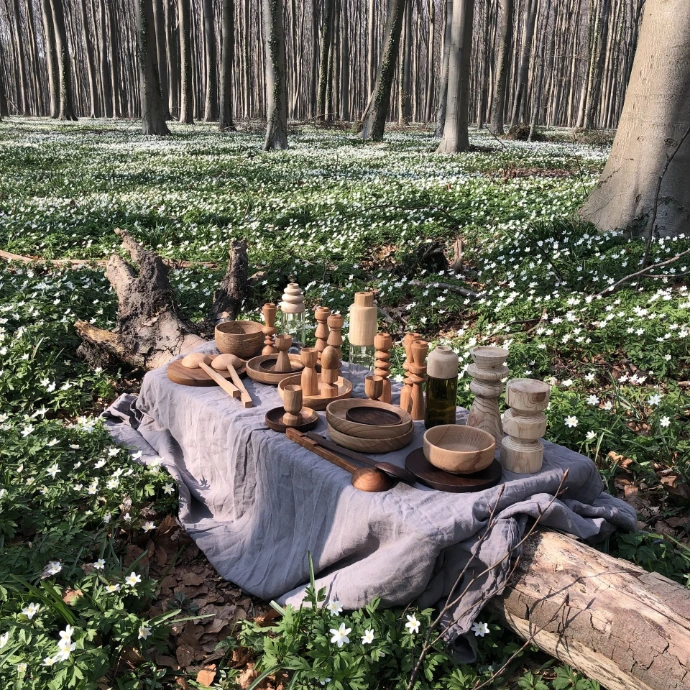 Le bois de hêtre que j'utilise vient principalement de la forêt de Soignes aux environs de Bruxelles, ce qui crée – de fait – un lien de proximité avec ce lieu enchanteur, si emblématique,